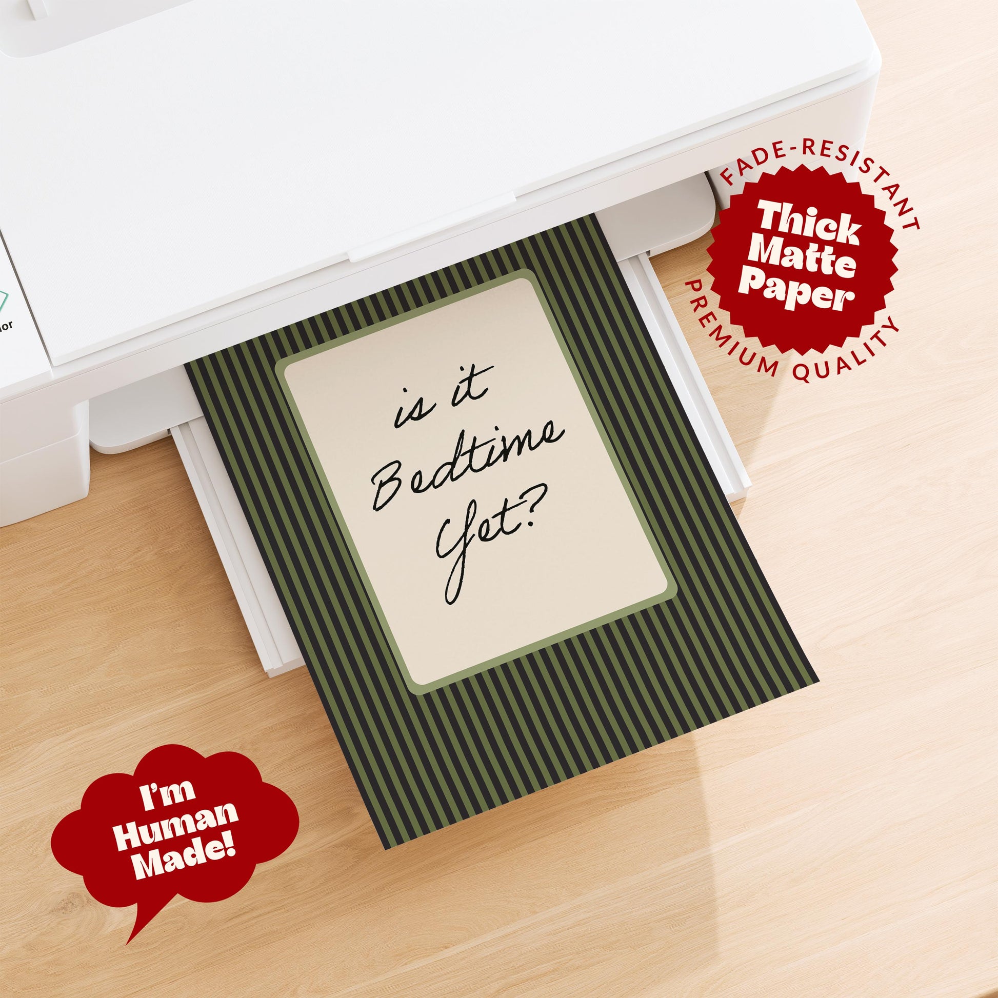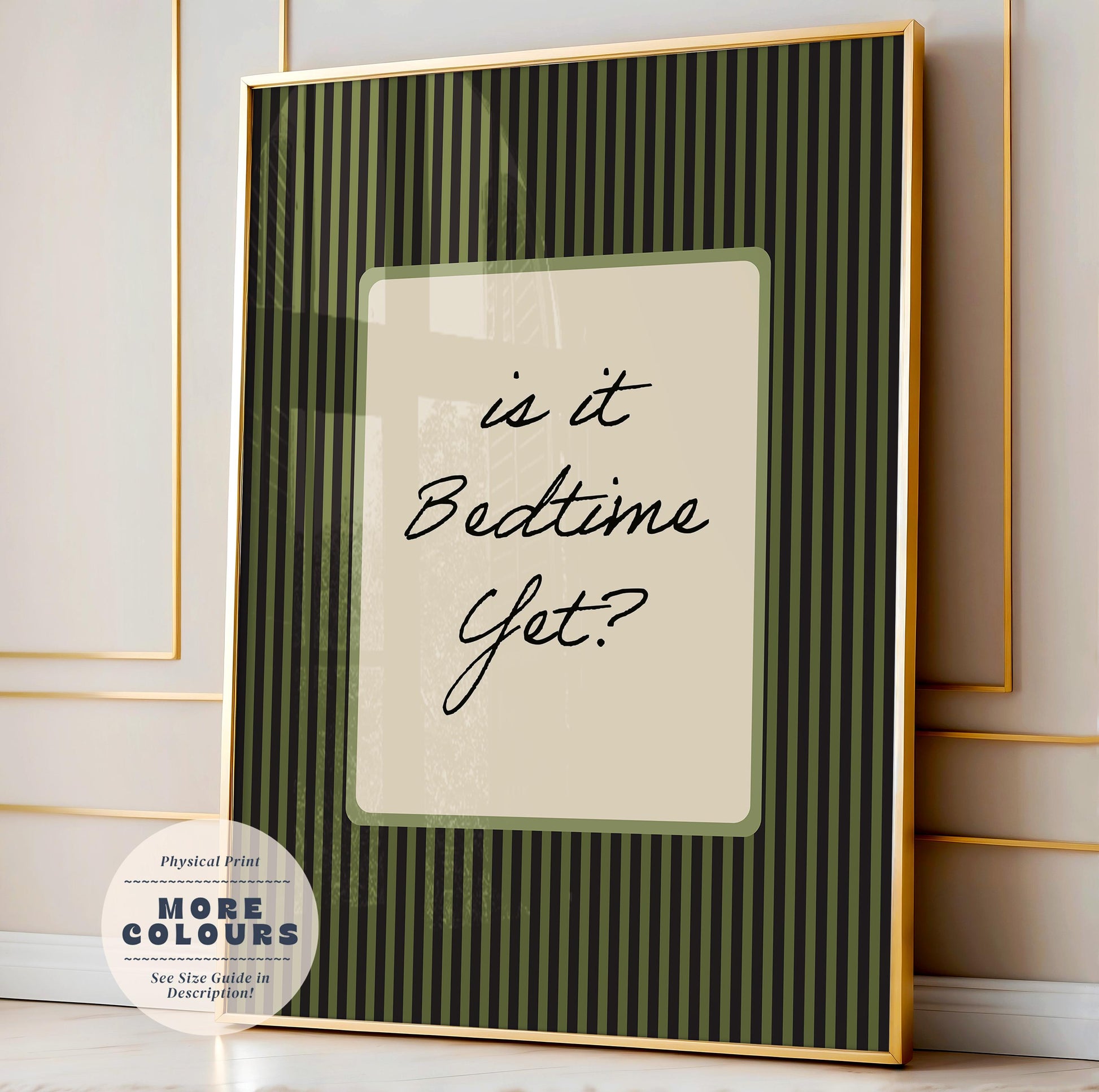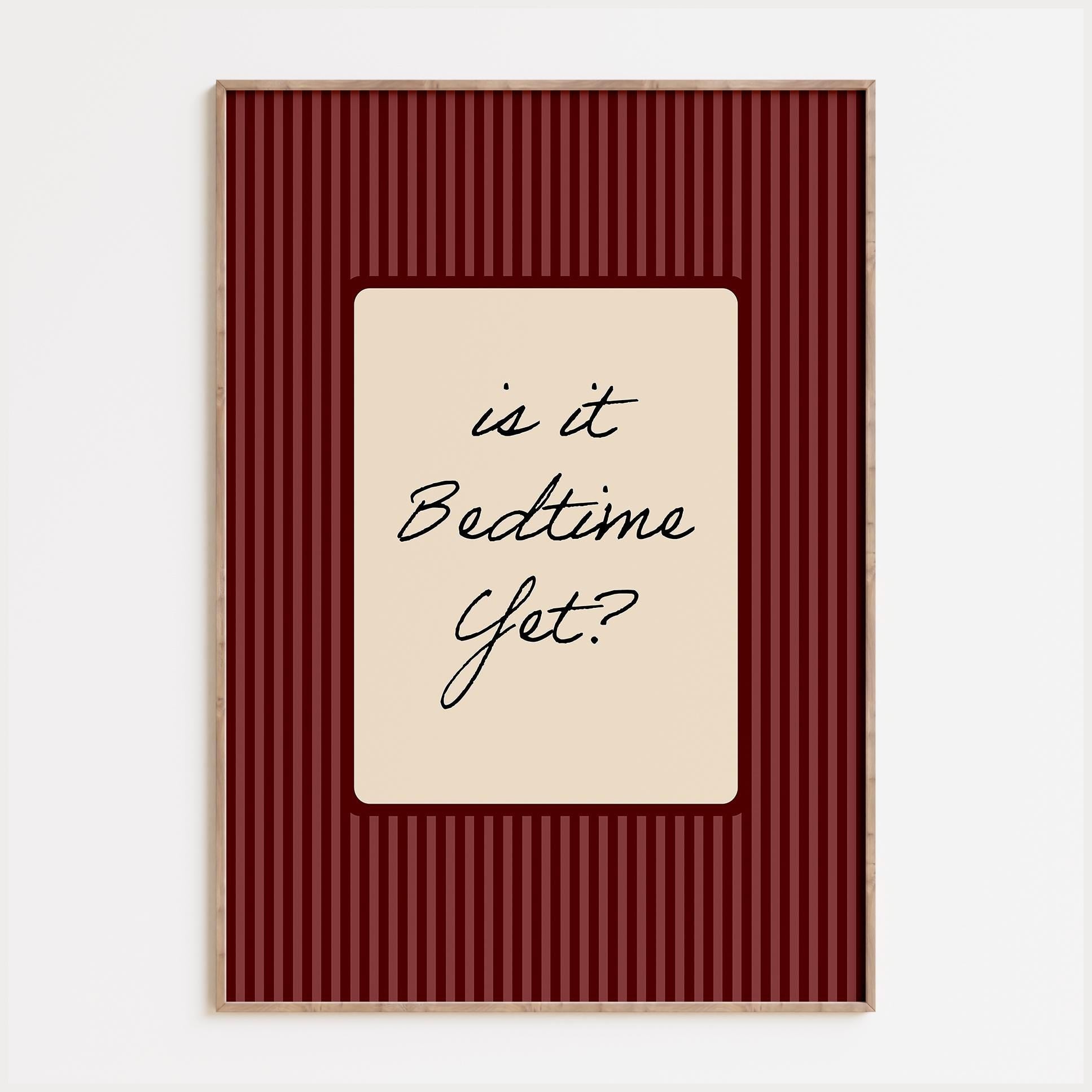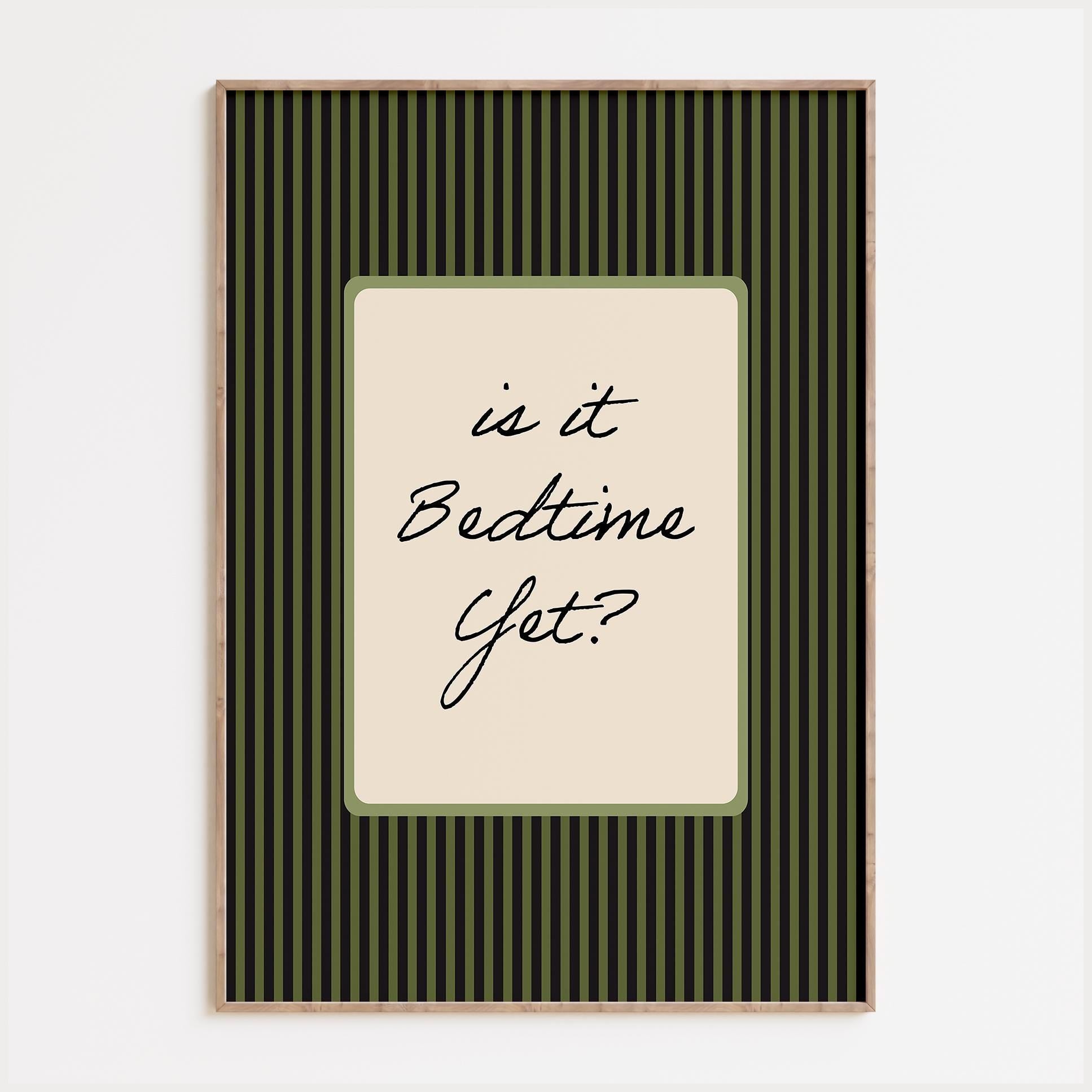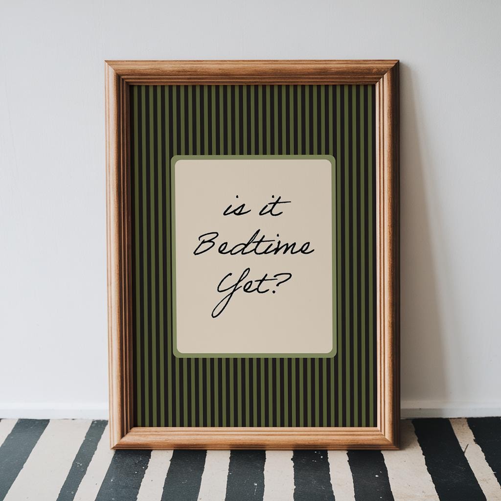 Retro striped print with "is it bedtime yet?" handwritten quote - perfect for your bedroom or as a gift for a loved one!