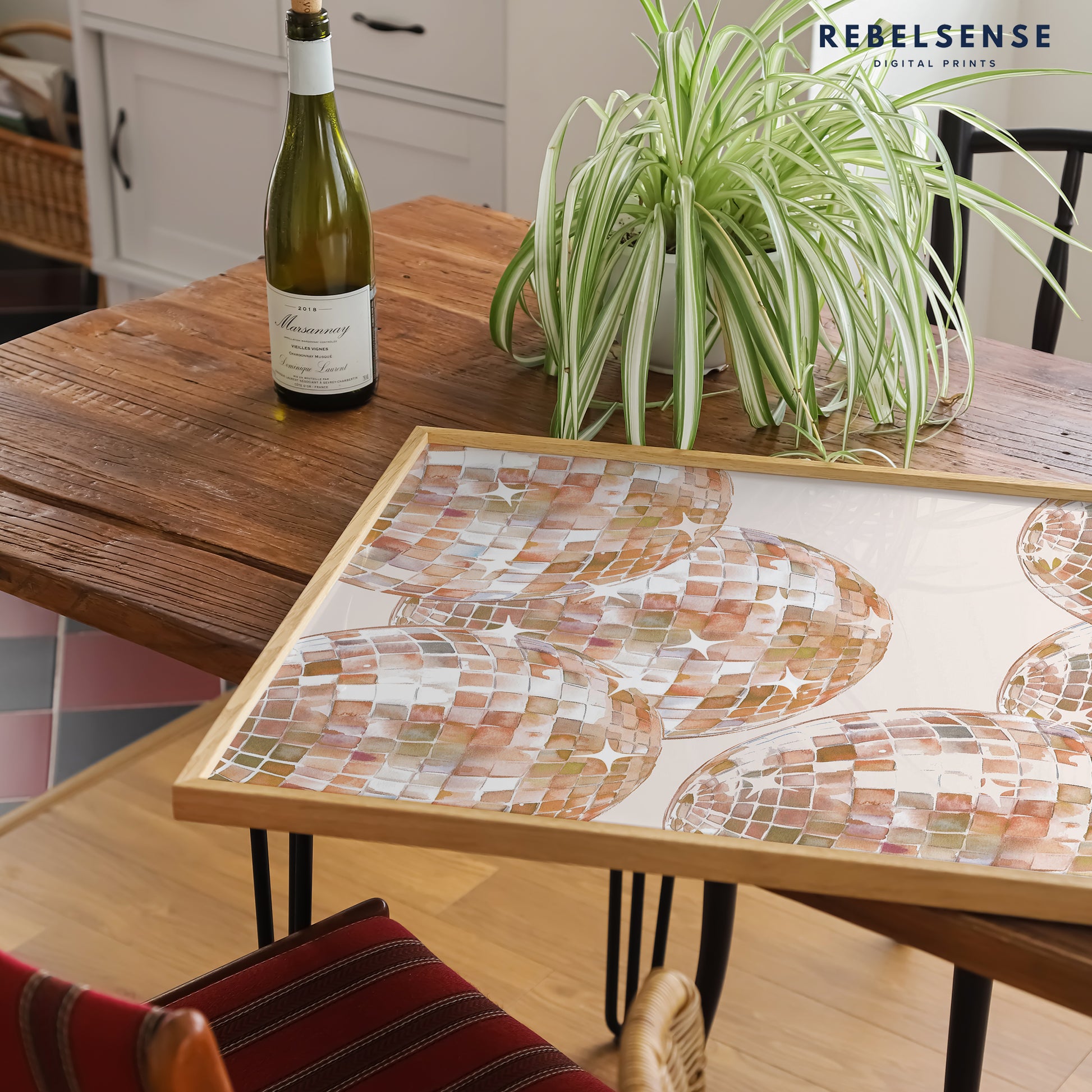 Add some groovy vibes to your space with this beige Disco Ball print! Perfect for funky home decor, it brings a touch of 70s flair to your apartment or college dorm. Whether you're into dopamine decor or retro aesthetics, this trendy mirrorball poster is the ultimate retro art piece.