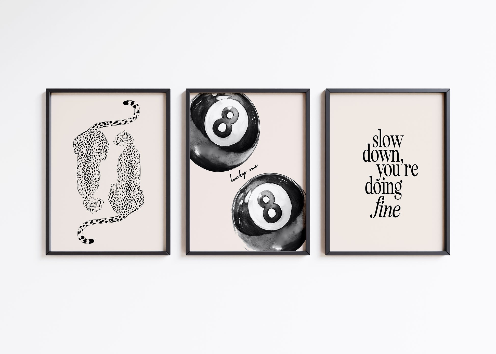 Black Lucky Leopard Set Of 3 Prints