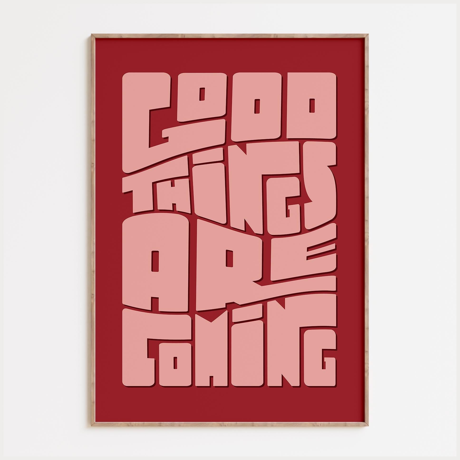 Funky retro inspired "Good Things Are Coming" poster in a maximalist style - the perfect print for your bedroom, office, or any room in need of some feel-good vibes!