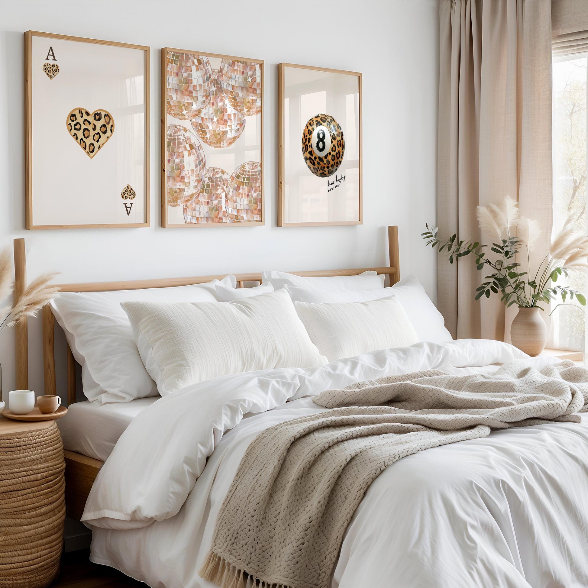 This set of 3 leopard print wall art is the ultimate combo for turning your apartment or dorm into a stylish, funky space. Whether you're going for preppy room decor or looking for some bold above-bed wall art, these prints have you covered!
