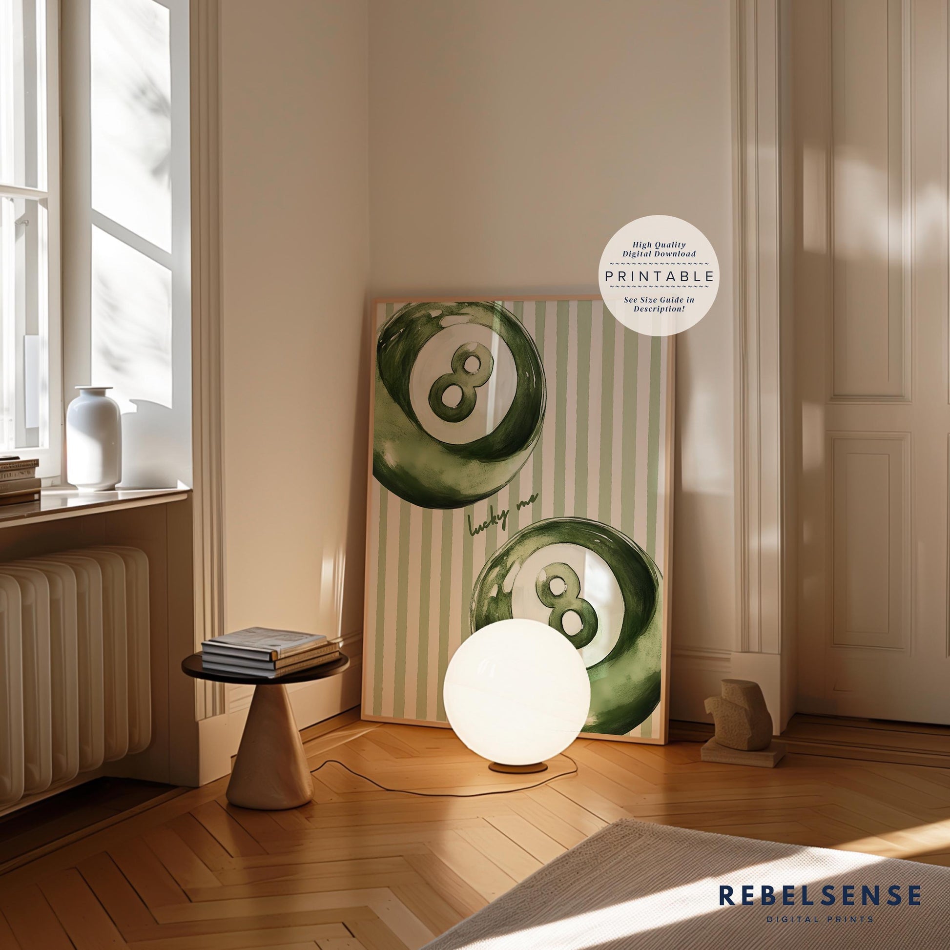 Sage green pool balls on a hand drawn sage striped background