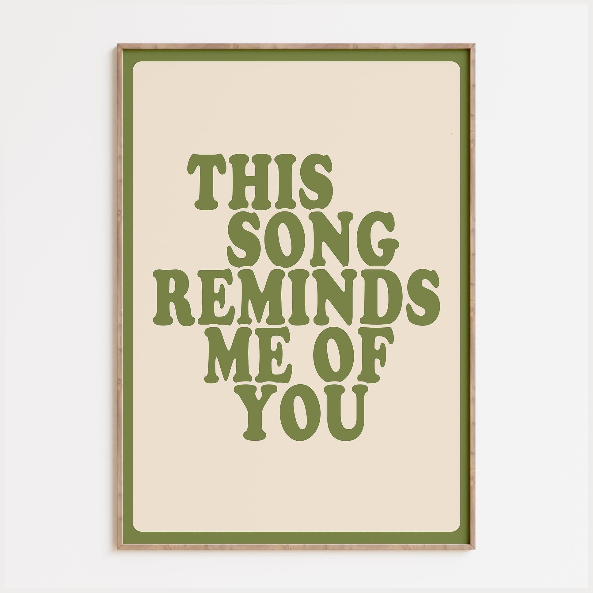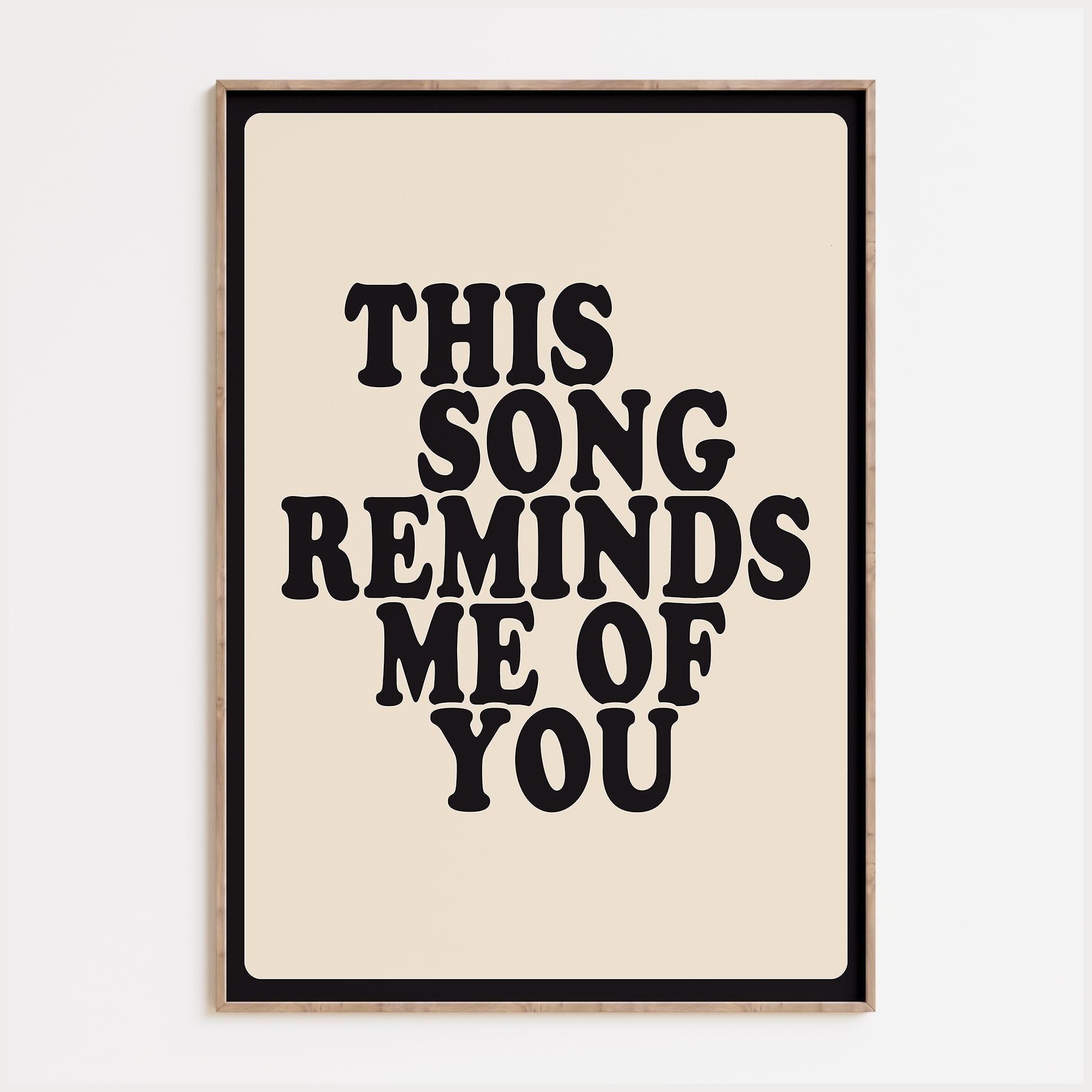 Retro 70s inspired print with "this song reminds me of you" quote in bold typography - the perfect print for your bedroom or living room, or as a gift for a loved one!